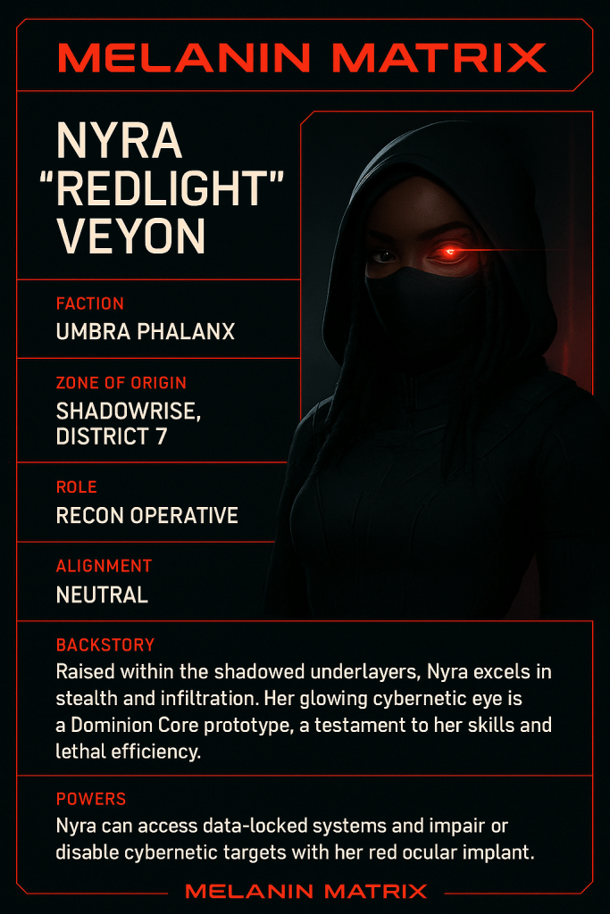 In a future warped by digital oppression and crumbling cities, one name sparks both reverence and dread—Nyra Veyon, better known by her codename: Redlight.